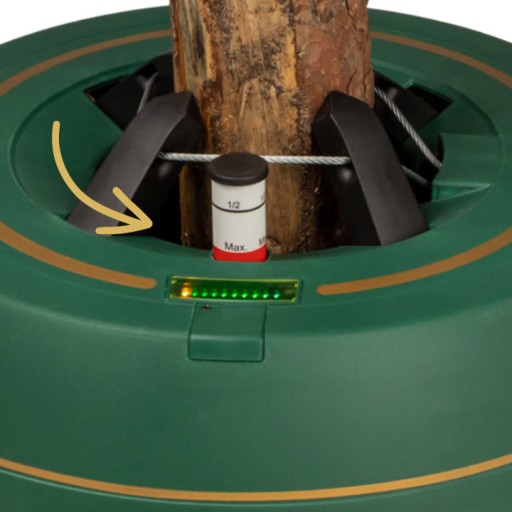 Wodę należy wlać do otworu, gdzie wbity jest pień choinki. O prawidłowym napełnieniu informuje wysuwający się wskaźnik.