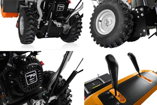 - Specjalne koła Snow Hog, zapewniające przyczepność na nierównym terenie