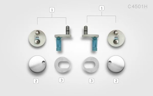 W zestawie specjalne zawiasy, które dzięki szerokiemu zakresowi regulacji do 20,5 cm pasują do Ceramiki Roca Hall 50 cm.