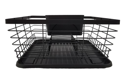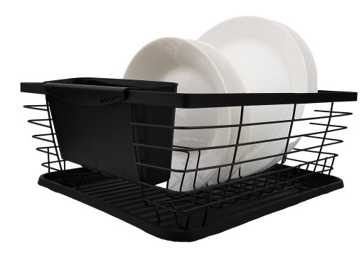 Atrybutami tego ociekacza są wysoka jakość oraz trwała, metalowa konstrukcja. Tacka wykonana z łatwego w utrzymaniu w czystości plastiku pełni funkcję zabezpieczenia blatu przed zamoczeniem. Pozwala wysuszyć większa ilość naczyń a przy tym lepiej wykorzystać przestrzeń. Dodatkowo, zestaw zawiera pojemnik na sztućce. Elegancka, czarna suszarka to bardzo dobra i praktyczna propozycja do każdej kuchni.