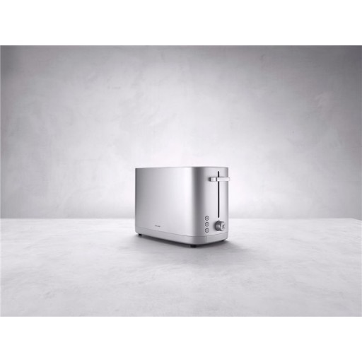Ciesz się swoim tostem tak, jak lubisz najbardziej. Za każdym razem. Wysokiej jakości toster ZWILLING na dwie kromki pieczywa zapewnia nie tylko wspaniały design, ale idealny, pożądany stopień zarumienienia chleba. Automatycznie skraca proces opiekania, aby osiągnąć idealny kolor tostu. Cztery oddzielne elementy grzewcze tego 1000-watowego urządzenia przyrumieniają go równomiernie z obu stron. Rezultat? Chrupki na zewnątrz, ale wciąż idealnie miękki w środku. Gotowe tosty nie wyskakują pod niebo. Dzięki specjalnej funkcji Soft-Lift kromki powoli podnoszą się, co umożliwia chwycenie nawet małych kawałków pieczywa. Nie ma możliwości przypalenia – po upływie ustalonego czasu urządzenie automatycznie się wyłącza. Ponadto wygodny przycisk stopu pozwala na zatrzymanie opiekania w dowolnym momencie, a wysuwana szufladka zbiera okruchy i łatwo się opróżnia. Poza siedmioma programami brązowienia toster ZWILLING Enfinigy posiada trzy automatyczne programy. Funkcja podgrzewania umożliwia podgrzanie ostygłego tostu, rozmrażanie pozwala na bezpośrednie opiekanie zamrożonego pieczywa, a funkcja bajgla sprawia, że kromki są przyjemnie chrupiące na zewnątrz i miękkie w środku. CECHY SZCZEGÓLNE Toster na 2 kromki Automatyczna regulacja czasu opiekania dla zapewnienia równomiernego zrumienienia nawet w przypadku kilku tostów 3 automatyczne programy: podgrzewanie, rozmrażanie i funkcja bajgla Funkcja Soft-Lift dla delikatnego podnoszenia pieczywa po zakończeniu opiekania Cztery oddzielne elementy grzewcze dla równego opiekania z obu stron Ekstremalnie odporna, wysokiej jakości specjalna powłoka o wyglądzie stali szlachetnej Zdejmowany podgrzewacz do bułek w zestawie