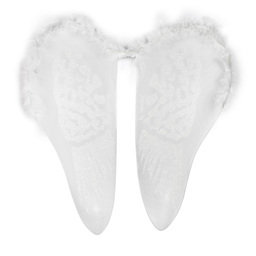 Przepiękne skrzydła ozdobione brokatem i boa. Mocowane w łatwy sposób na gumki. Gwarantuje utrzymanie się skrzydełek,