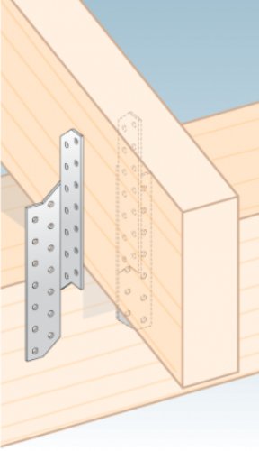 Specjalnie zaprojektowany kątownik do utwierdzania krokwi. Jego podstawową zaletą jest znaczne zwiększenie wytrzymałości dachu na podrywanie przez wiatr.