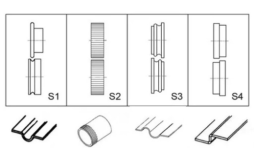 ⚙️ Do maszyny załączono sześć zestawów rolek, które pozwalają na różne rodzaje obróbki blachy.