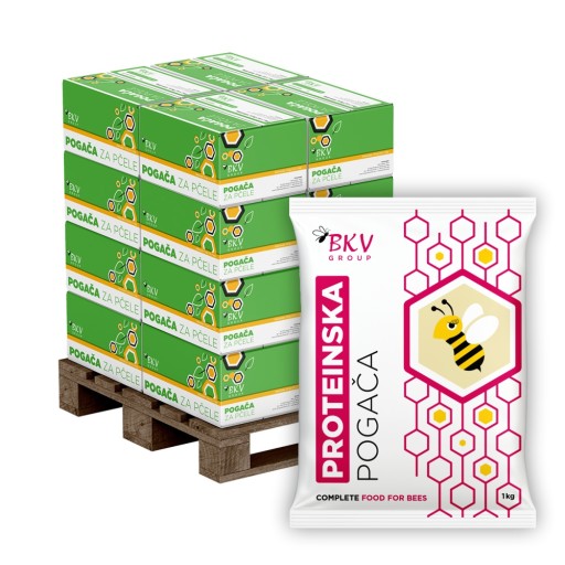 BKV Proteinska to pokarm dla pszczół z białkiem w formie ciasta stworzony z cukru, sacharozy oraz inwertowanego syropu glukozowo-fruktozowego.