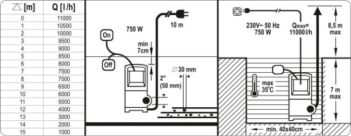 - automatyczny przełącznik pływakowy na bocznej prowadnicy reaguje na zmieniający się poziom wody już od 5 mm – pompa włącza się samoczynnie, zapewniając wypompowanie całej wody, bez konieczności nadzorowania jej pracy