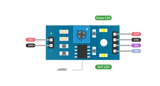 Moduł czujnika światła jest wrażliwy na natężenie światła otoczenia i jest używany do wykrywania jasności i natężenia światła otoczenia. Czułość detekcji sygnału można regulować za pomocą potencjometru.