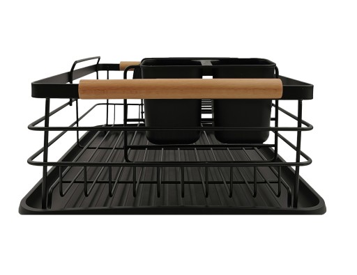 Designerski wygląd ociekacza do naczyń prezentuje się wyjątkowo dzięki metalowej, czarnej ramie oraz prostej konstrukcji, które doskonale komponują się z wnętrzem każdej kuchni. Metalowy ociekacz został pokryty proszkowo, nadając mu jednolity, elegancki kolor - czarny. Całość nie tylko estetycznie prezentuje się w kuchni, ale także doskonale spełnia swoją funkcję. Naczynia szybko schną na ociekaczu, a specjalne podkładki zatrzymujące wodę umożliwiają jego ustawienie praktycznie w dowolnym miejscu.
