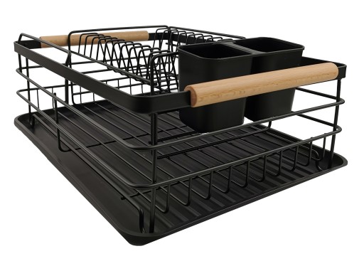 SUSZARKA DO NACZYŃ STOJĄCA OCIEKACZ Z TACKĄ CZARNA