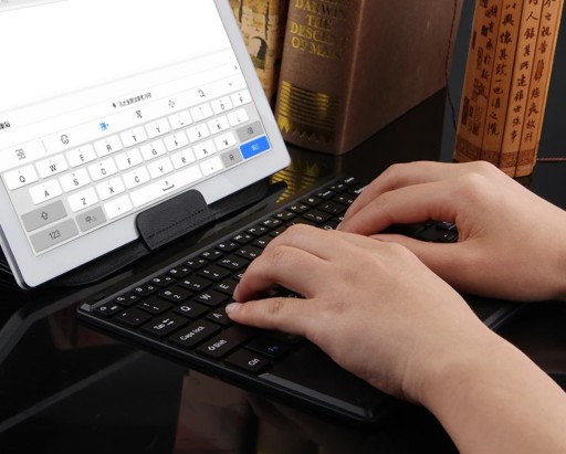 Klawiatura Bluetooth do tabletów to przenośne urządzenie do wprowadzania tekstu, które łączy się z tabletem za pomocą technologii Bluetooth. Jest kompaktowa i ma taki sam układ klawiszy jak klawiatura komputerowa, ale w mniejszym formacie. Umożliwia wygodne pisanie na tablecie bez konieczności korzystania z ekranowej klawiatury dotykowej. Umożliwia także wygodne pisanie także na innych urządzeniach, takich jak smartfony, , komputery czy nawet telewizory, eliminując konieczność używania przewodów. Dzięki temu jest mobilna i łatwa w transporcie, umożliwiając wygodne pisanie w różnych miejscach. Klawiatura posiada wbudowany touchpad który ułatwia nawigowanie po urządzeniu. Jest ładowana przez kabel USB który jest dołączony do zestawu.