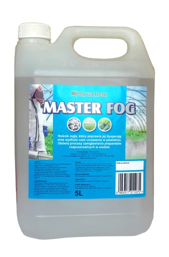 Nośnik mgły, który poprawia jej dyspersję oraz wydłuża czas unoszenia w powietrzu. Ułatwia procesy zamgławiania preparatów rozpuszczalnych w wodzie. Master Fog znacznie wpływa na poprawę słabych właściwości zamgławiających wody. Preparat posiada w składzie jedynie substancje przyjazne dla środowiska naturalnego. Substancja aktywna ulega szybkiej degradacji. W swoim składzie zawiera mieszaninę alkoholi wielowodorotlenowych.