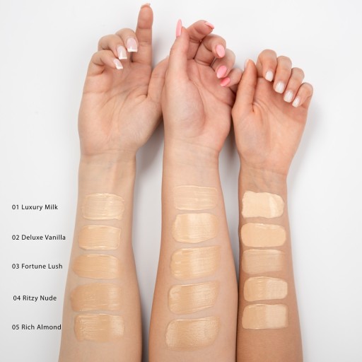 Skład: Aqua (Water), Isododecane, Triethylhexanoin, Dimethicone, Cetyl PEG/PPG-10/1 Dimethicone, PEG-10 Dimethicone, Synthetic Florphlogopide, Alumina, Mica, Dimethicone Crosspolymer, Glycerin, PCA Dimethicone, Phenoxyethanol, Magnesium Sulfate, Silica, Parfum (Fragrance), Ethylhexylglycerin, Tin Oxide (CI 77861), Hydrolyzed Verbascum Thapsus Flower, Sodium Hyaluronate, Hyaluronic Acid, Citric Acid, Potassium Sorbate, Sodium Benzoate, CI 77491, CI 77492, CI 77499, CI 77891 (Titanium Dioxide).