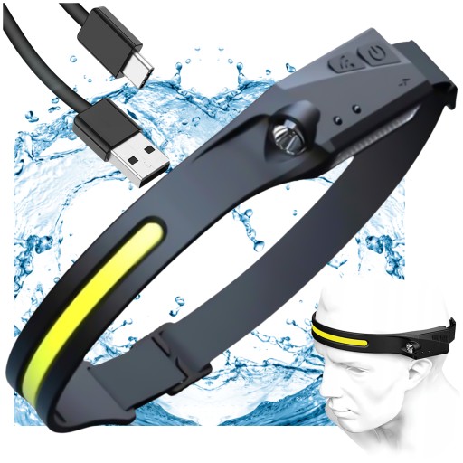 MOCNA LATARKA CZOŁOWA LED REFLEKTOR NA GŁOWĘ COB WODOODPORNA USB AKUMULATOR