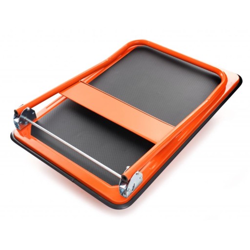 Wózek posiada antypoślizgową powierzchnię, a na krawędziach wykończony jest amortyzująca gumą.