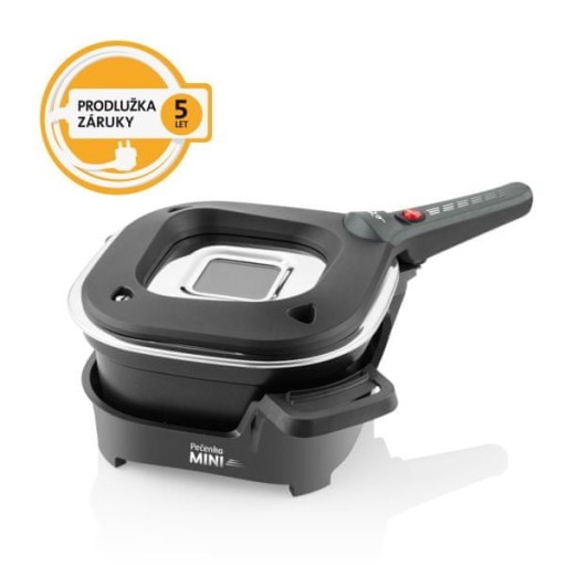 Pojemnik roboczy Pieczonki mini jest wykonany z nieprzywierającej powierzchni teflonowej, a jego praktyczny kwadratowy kształt o pojemności 3 litrów jest wyjątkowy. Szczególnie docenisz to podczas pieczenia typowych bułek „Honza”. Pokrywa z oprawką ze stali nierdzewnej i specjalnymi otworami wentylacyjnymi posiada praktyczny szklany wizjer. Bezpieczne użytkowanie zapewnia również bezpiecznik automatycznego wyłączania po zdjęciu pokrywy. Podstawa jest stabilna, a izolowane termicznie uchwyty umożliwiają bezpieczną obsługę i obsługę. Praktyczność uzupełnia również długość przewodu zasilającego 1,5 m. Nowoczesny design ETA mini pasuje do każdej kuchni i domku.