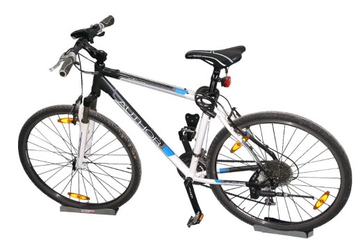 Posiada uchwyt na pedał roweru (blacha 3mm) oraz dwie blachy o grubości 1.0 mm podtrzymujące koła roweru, wyposażone w ograniczniki