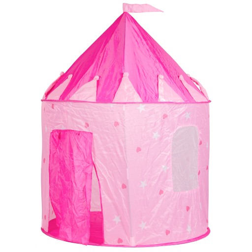 Produkt kształtem przypomina różowy domek - posiada daszek. Jego charakter idealnie wpasuję się w klimat dziewczęcego pokoju i będzie sprawiał frajdę przy wielu zabawach z koleżankami. Namiot jest praktyczny oraz łatwy w montażu. Dzięki lekkiemu stelażowi łatwo przenieść go z miejsca na miejsce.