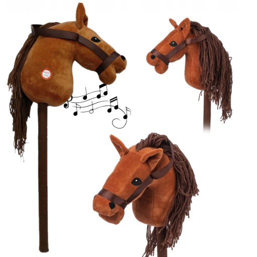 UROCZA GŁOWA KONIA z DŁUGĄ GRZYWĄ. KONIK w PIĘKNYM BRĄZOWYM UMASZCZENIU na KIJKU. KONIK WYDAJE ODGŁOSY po NACIŚNIĘCIU na GUZIK ❤️
