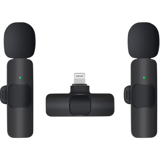 - W zestawie: 2x mikrofon Apexel, odbiornik Lightning, (brak)instrukcja obsługi, 1x kabel do ładowania USB-C