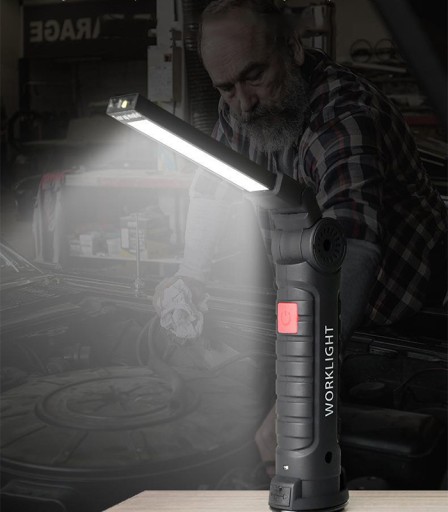 Wbudowany magnes pozwala łatwo przymocować ją do maski samochodu, oświetlając dokładnie miejsce pracy i zwiększając komfort pracy w warsztacie.