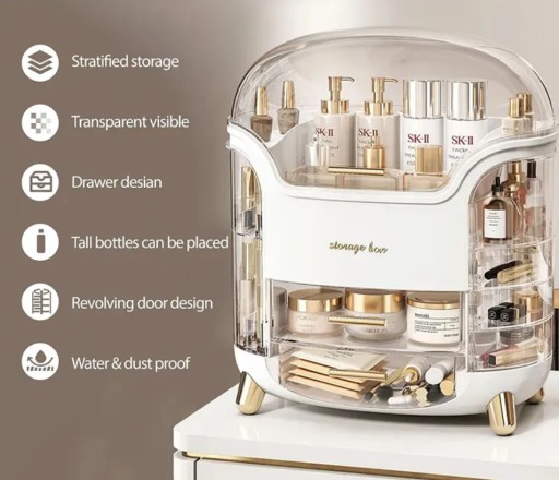 Dzięki temu organizerowi na kosmetyki i biżuterię utrzymasz porządek w swoich drobiazgach w sposób nie tylko praktyczny, ale i stylowy. To doskonała propozycja dla wszystkich kobiet, które cenią zarówno funkcjonalność, jak i estetykę w codziennym użytkowaniu kosmetyków.