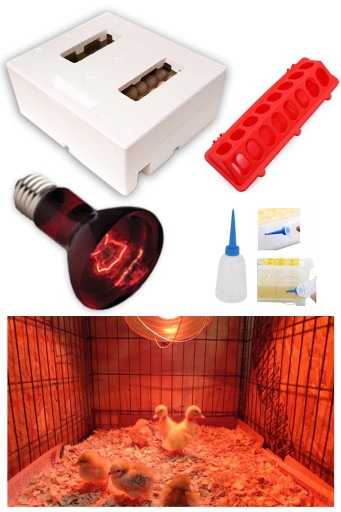Zestaw niezbędnych akcesoriów do inkubacji i odchowu ptactwa.