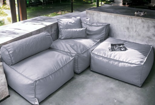 moduł leżaka czy kanapy wykonany jest z tkaniny poliestrowej typu len o właściwościach wodoodpornych.W środku znajduje się granulowany styropian. Wszystko obszywamy podwójnymi mocnymi szwami. Dzięki takiemu szyciu mamy pewność, że fotel będzie długo służył, nie będzie się wysypywał wkład Swoje walory estetyczne oraz wytrzymałą konstrukcję zawdzięcza przemyślanemu projektowi i wykorzystaniu materiałów wysokiej jakości, podwójnym zapięciu oraz podwójnym szwom.