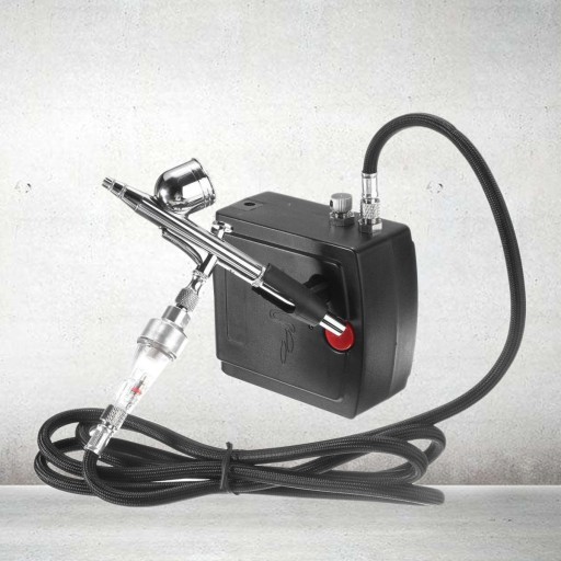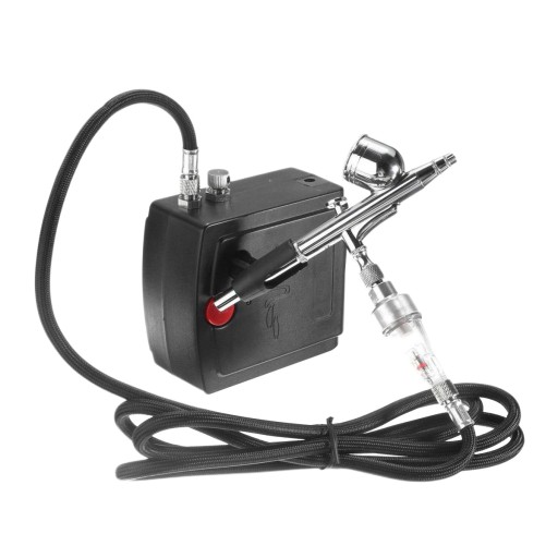 Mini aerograf z przenośną sprężarką.