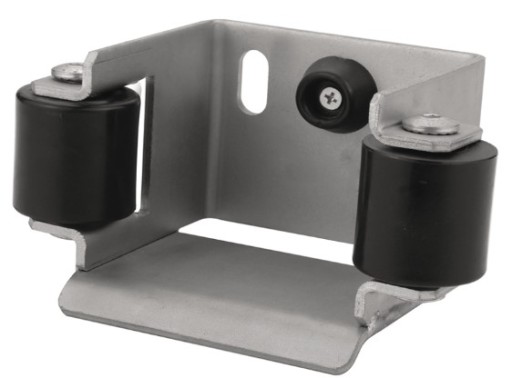 Uchwyt górny do bram przesuwnych samonośnych i szynowych, który stabilizuje je po zamknięciu uniemożliwiając ruchy boczne.