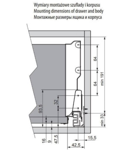 - dwie prowadnice pełnego wysuwu z cichym domykiem
