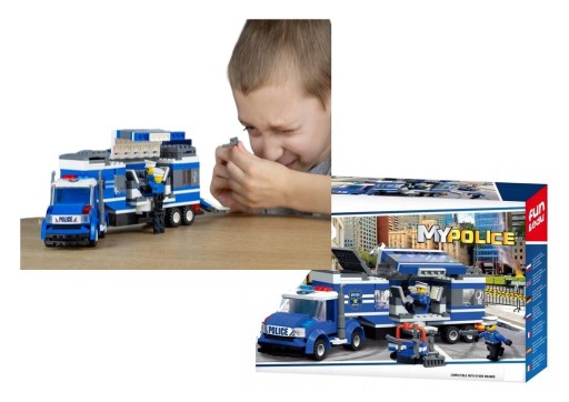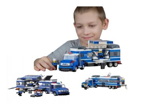 Zestaw zawiera dużą mobilną komendę policji oraz figurki policjantów !