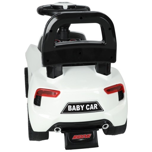 JEŹDZIK PCHACZ AUTO Z DŹWIĘKIEM I ŚWIATŁAMI BIAŁY 65CM MAX 30KG + NAKLEJKA