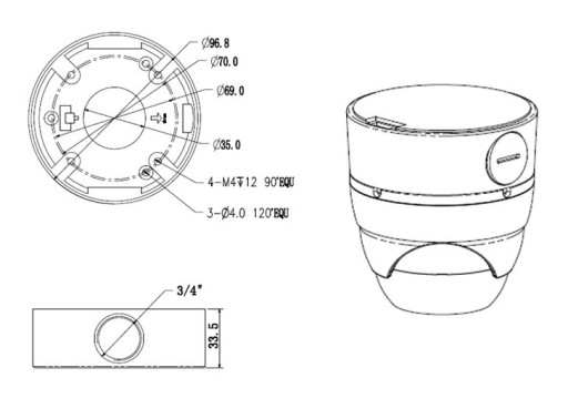 Uchwyt/adapter sufitowy natynkowy, dedykowany do kamer kopułowych. Można montować na nim kamery wandaloodporne. Posiada bardzo przydatną możliwość ukrycia kabli i złącz wychodzących z kamery. Dedykowany do kamer serii BCS-DMIP1000AIR/IR/IR-E. Materiał - aluminium malowane proszkowo, kolor biały.