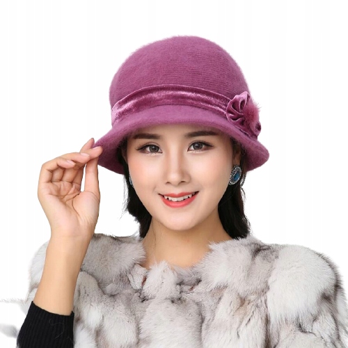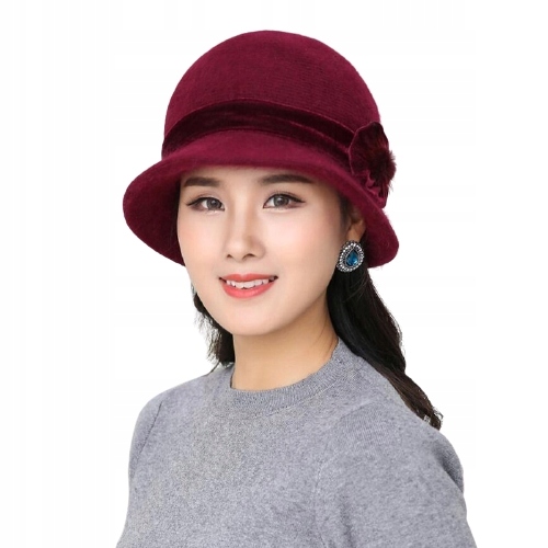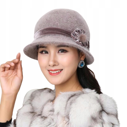 DAMSKI MELONIK KAPELUSZ ZIMOWY KWIATEK KWIAT