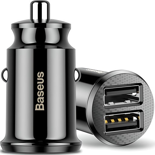 BASEUS GRAIN MINI ŁADOWARKA SAMOCHODOWA 2XUSB CZARNA 3.1A Z PODŚWIETLANIEM