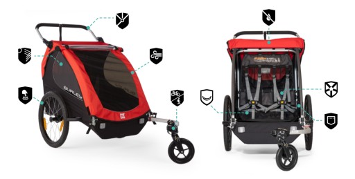 Można ją łatwo przekształcić z lekkiej przyczepki rowerowej dla 2 dzieci w wygodny wózek spacerowy. Idealny dla każdego, kto szuka rozwiązania, aby zabrać dzieci na spacer, a także na przyjemną przejażdżkę rowerową. Dzięki okienkom chroniącym przed promieniowaniem UV, przednim i tylnym reflektorom oraz pięciopunktowemu systemowi uprzęży, Honey Bee łączy zarówno bezpieczeństwo, jak i wygodę.