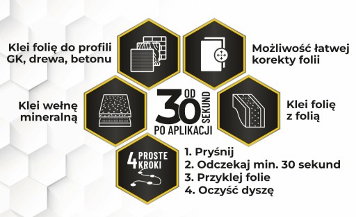 FIX-FOL jest specjalnym klejem kontaktowym nowej generacji przeznaczonym do mocowania folii paraizolacyjnych lub membran do profili aluminiowych / drewnianych w zabudowach gipsowo - kartonowych. Klej można wykorzystać do klejenia folii do folii oraz folii i wełny mineralnej do powierzchni nośnych np.: beton, drewno, stal, itp.