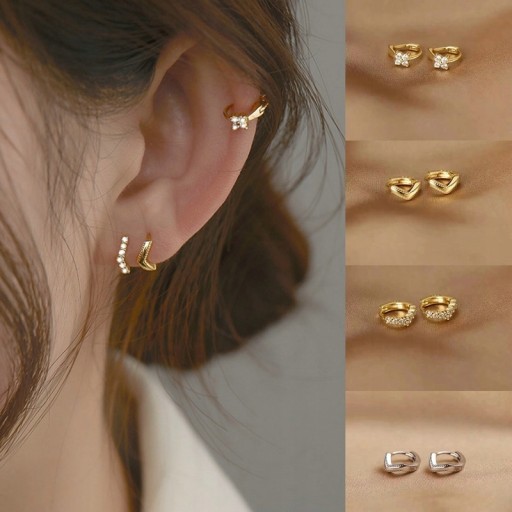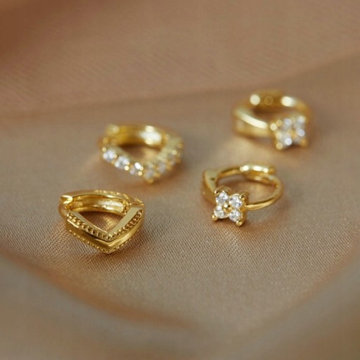 Позолоченные обручи Маленькие серьги-клеверы в стиле бохо