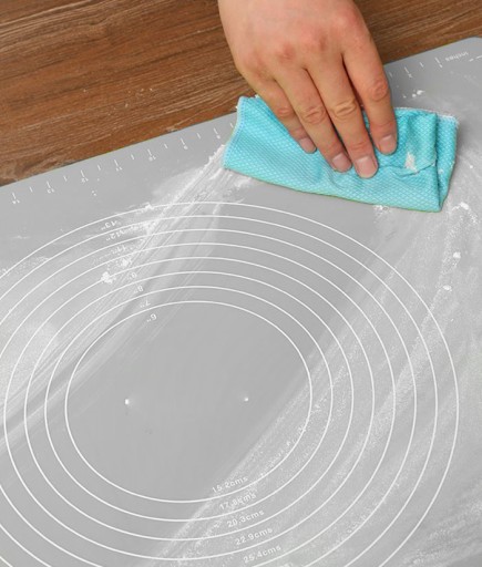 Stolnica kuchenna wykonana z silikonu w rozmiarze 65 x 45 cm. Eliminuje problem bałaganu, po skończonej pracy wystarczy spłukać ją pod wodą i zwinąć w rulonik, zajmuje niewiele miejsca w szufladzie. Wytrzymała na rozdarcia i wysoką temperaturę - doskonale sprawdzi się jako podstawka pod ciepłe naczynia. Dobrze przylega do stołu/blatu i nie przesuwa się po nim podczas wyrabiania ciasta. Stolnica posiada nadrukowane podziałki długości i średnicy, dzięki czemu łatwiej przygotować różnego rodzaju wypieki. Wyprodukowana zgodnie z europejskimi standardami.