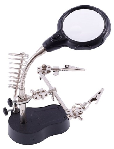 Uchwyt montażowy z lupą tzw trzecia ręka (helping hands). Niezastąpiona pomoc dla elektroników, majsterkowiczów, serwisantów telefonów komórkowych, zegarmistrzów itd.