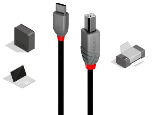 Kabel marki Lindy z serii Anthra Line gwarantuje pewne oraz niezawodne połączenie dwóch urządzeń wyposażonych w gniazda USB B - USB C. Przewodnik z miedzi cynowanej oraz podwójne ekranowanie zapewniają wydajne oraz wysokiej jakości połączenie.