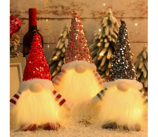 ✅ SKRZAT GNOM KRASNAL ŚWIĄTECZNY NA BOŻE NARODZENIE + PODŚWIETLENIE LED (na baterie)