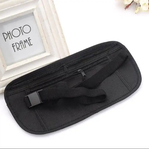 Dyskretna saszetka na pieniądze, karty czy też paszport. Wyposażona w elastyczny pasek dostosowujący się do każdej budowy ciała wraz z plastikową zapinaną klamrą.