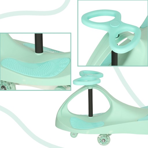 To prosta zabawka, którą maluch wprawia w ruch dzięki poruszaniu naprzemiennie kierownicą! Pozwala to na możliwość jazdy beż użycia nóg do odpychania się od podłogi!