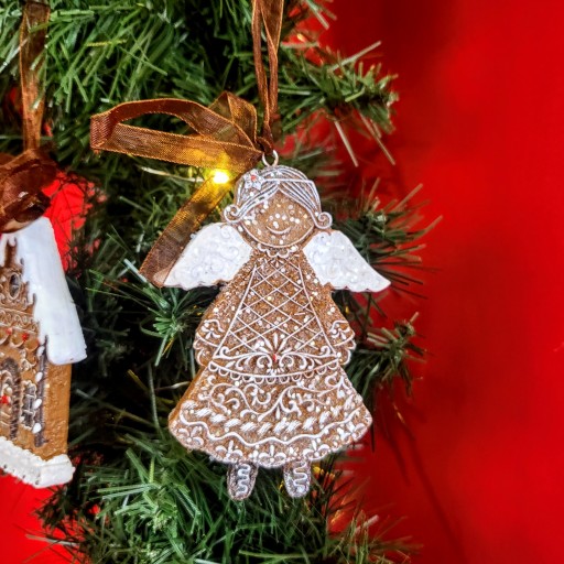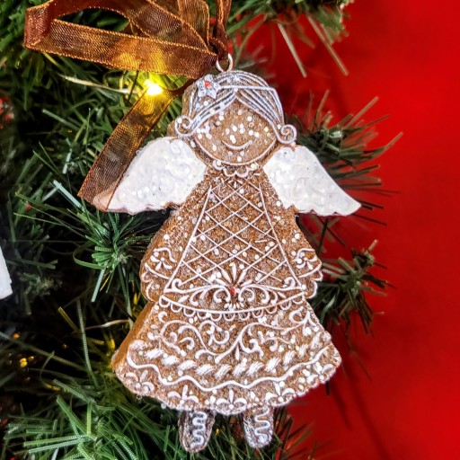 Świąteczna zawieszka w kształcie uroczego lukrowanego piernika- aniołka. Idealna jako wykończenie świątecznych dekoracji, która nadaje oryginalnego i nowatorskiego wyglądu.