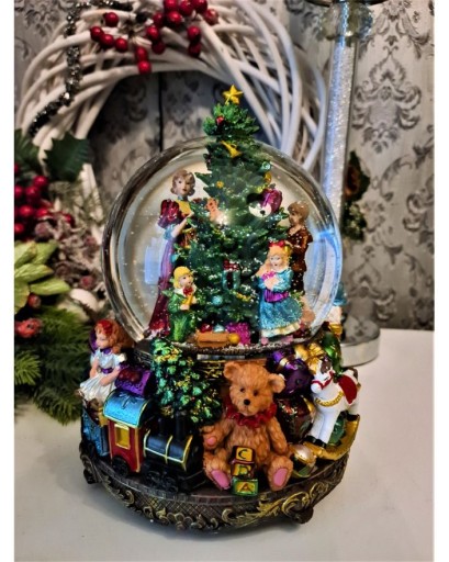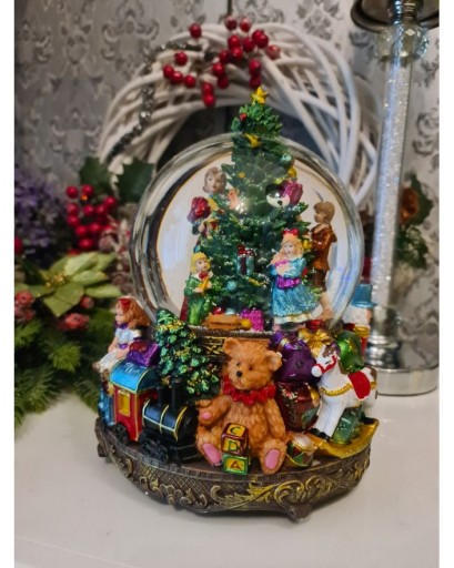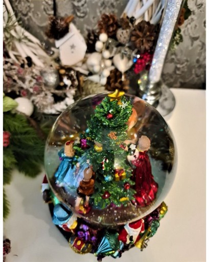 Po włożeniu baterii i nakręceniu kuli gra kolęda i świeci na różne kolory oraz sam porusza się śnieg !!!!!