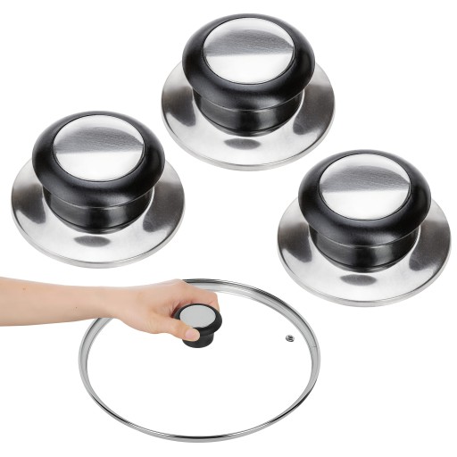 Twoja pokrywka straciła gałkę? Nie martw się! Nasz zestaw 3 uniwersalnych gałek to idealne rozwiązanie. Pasują do większości pokrywek – szklanych, emaliowanych, czy ze stali nierdzewnej.