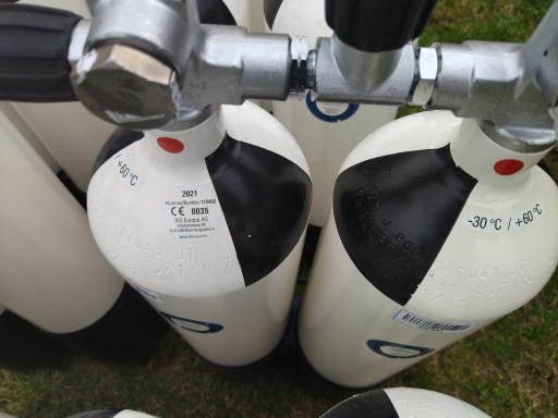 Zestaw Twin dwóch butli nurkowych, butle są nowe nigdy nie używane. Do tej pory służyły jako żelazny zapas rezerwowy straży pożarnej Leverkusen w Niemczech. Nie będę się rozpisywał, bo oferta jest skierowana dla ludzi, którzy w tej branży siedzą głębiej niż ja, więc nie będę pisał o rzeczach na których się nie znam.