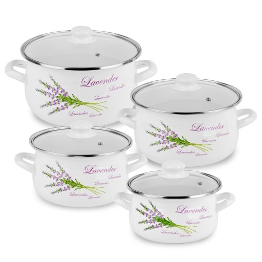 KOMPLET GARNKI indukcja emalia LAWENDA BIAŁE 8 el.