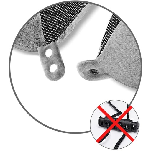 ► Wbudowane zapięcie z dwustopniowa regulację zwiększa praktyczność podczas użytkowania. Zastąpienie plastikowych elementów i sznurków - zapięciem na zatrzask w delikatnym materiale poduszki nie uwiera, nie gniecie podczas wypoczynku.